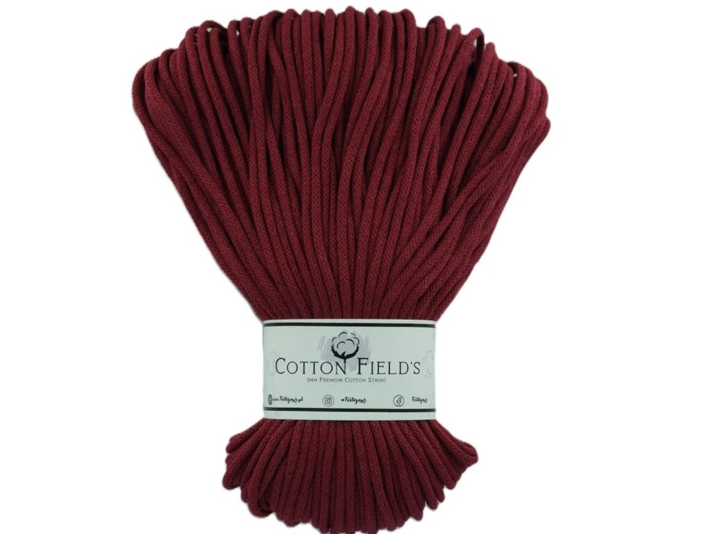 Wine Red – hluboká, bohatá červená s jemnými nádechy fialové, připomínající luxusní červené víno. Tato barva vyzařuje eleganci, sofistikovanost a teplý nádech tajemství. Na bavlněné šňůře působí luxusně a jemně, ideální pro ty, kdo hledají styl s nádechem noblesy a hloubky.