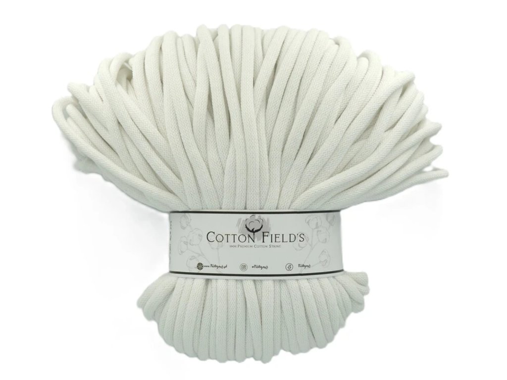 Šňůry Cotton fields jsou vyrobené z recyklované bavlny. Jemná a měkká konstrukce zaručuje příjemné tvoření. Šňůry mají bavlněné jádro s polyesterem a nedají se rozčesávat.